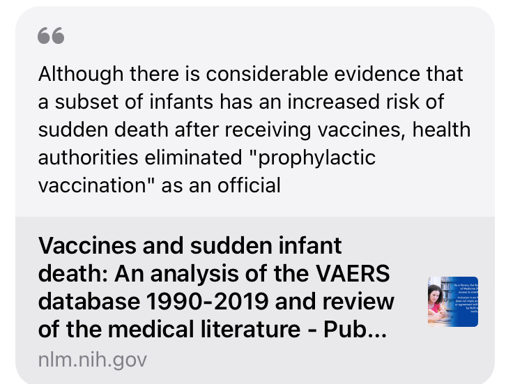 “A review of the medical literature substantiates a link between vaccines and sudden unexplained infant deaths.”
